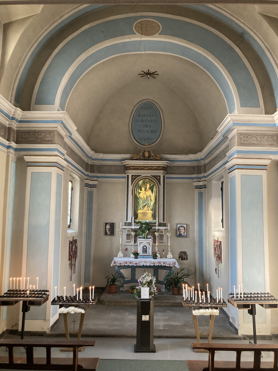 Al centro sopra l'altare, la statua della Madonna di Pompei donata da Agostino Corvi come ex-voto per grazia ricevuta.